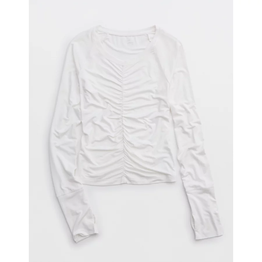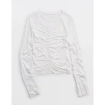 OFFLINE By Aerie Thumbs Up Ruched Long Sleeve T-Shirt – White