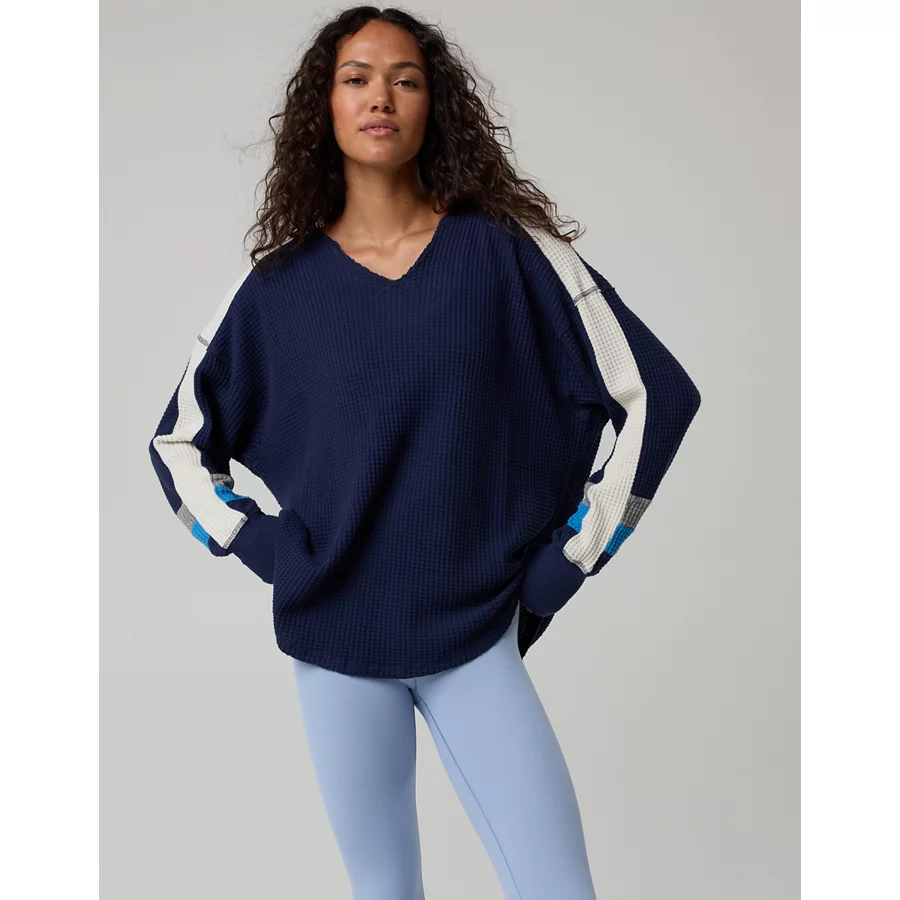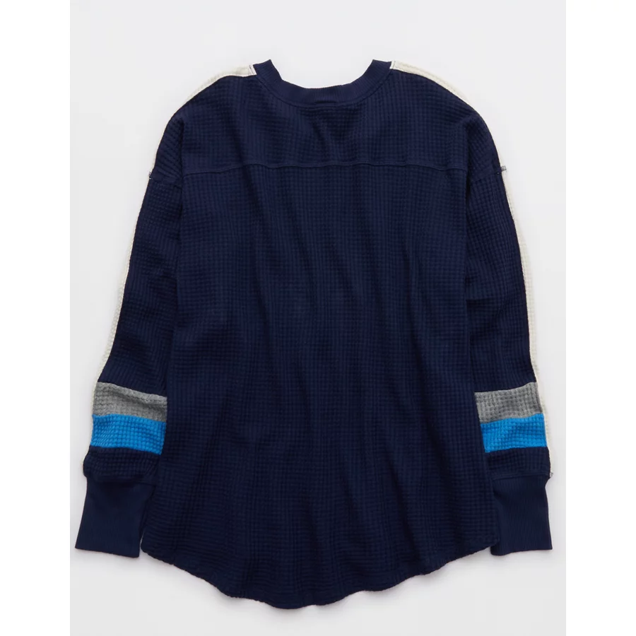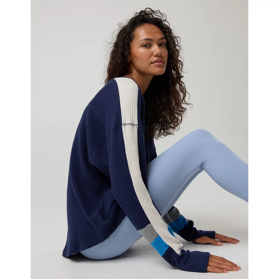 OFFLINE By Aerie Wow! Waffle Notch Neck Long Sleeve T-Shirt – Royal Navy