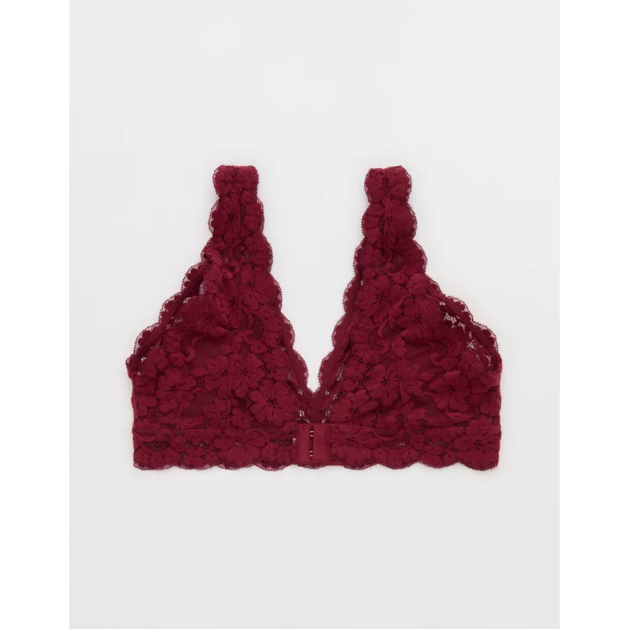 Show Off Chenille Lace Padded Plunge Bralette – Deep Cherry