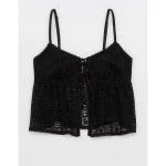 Show Off High Tide Lace Tie Front Tank Top – True Black