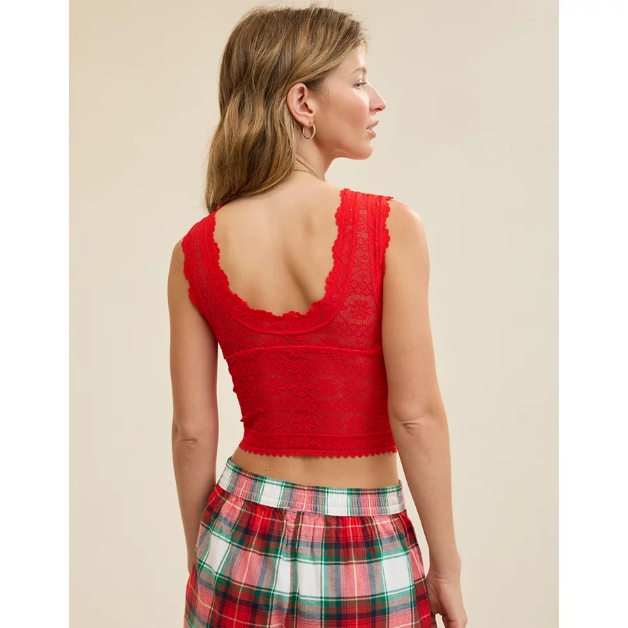 Show Off Lace Plunge Bra Top – Bright Red