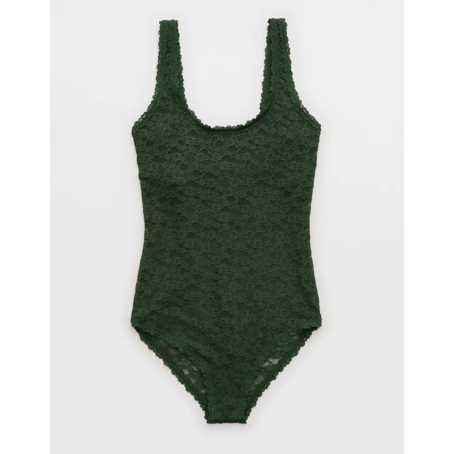 Show Off Vintage Lace Scoop Bodysuit – Rugged Green