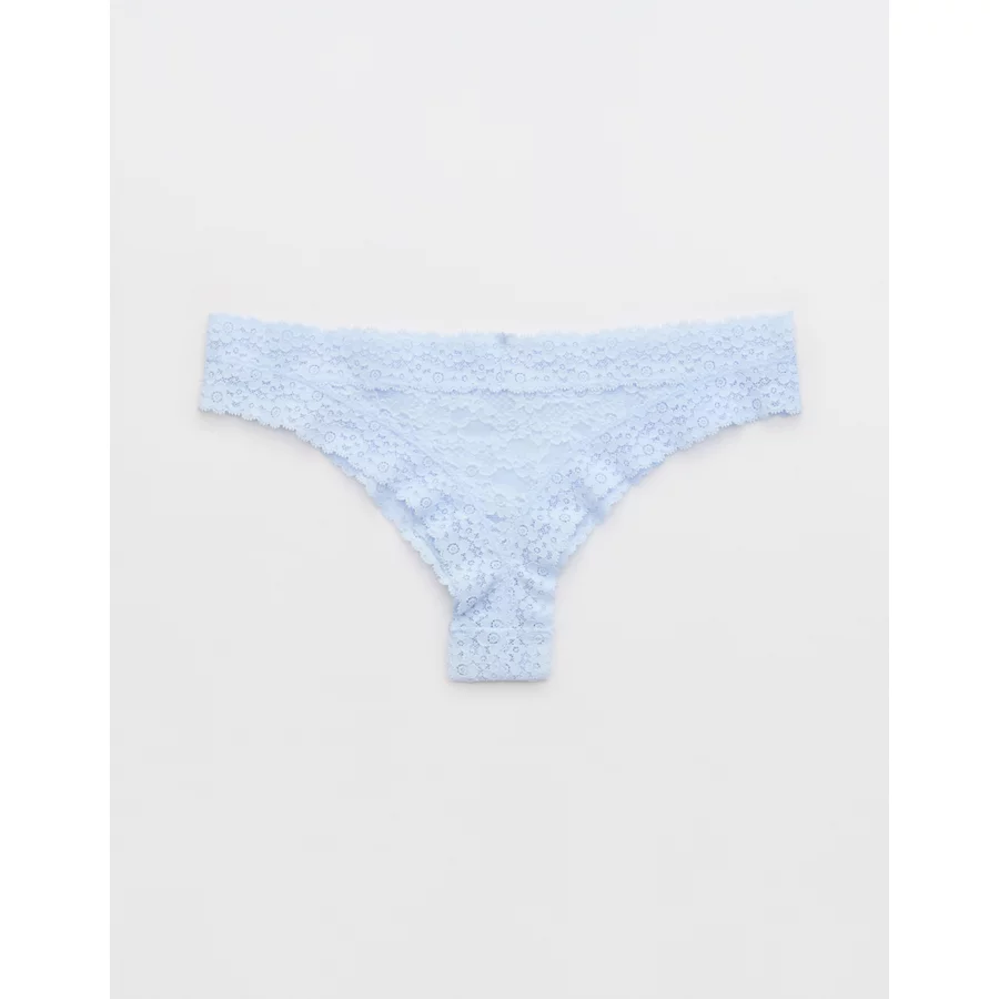 Show Off Vintage Lace Trim Thong Underwear – Eyelet Blue