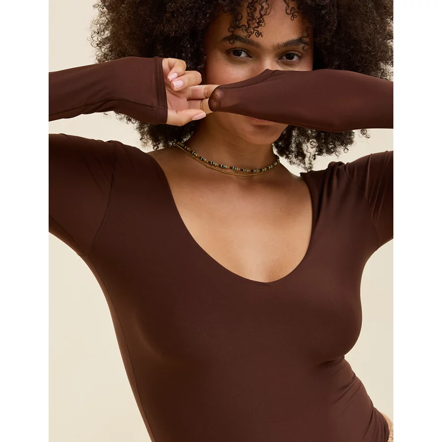 SMOOTHEZ Long Sleeve Plunge Bodysuit – Canyon Sun