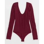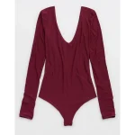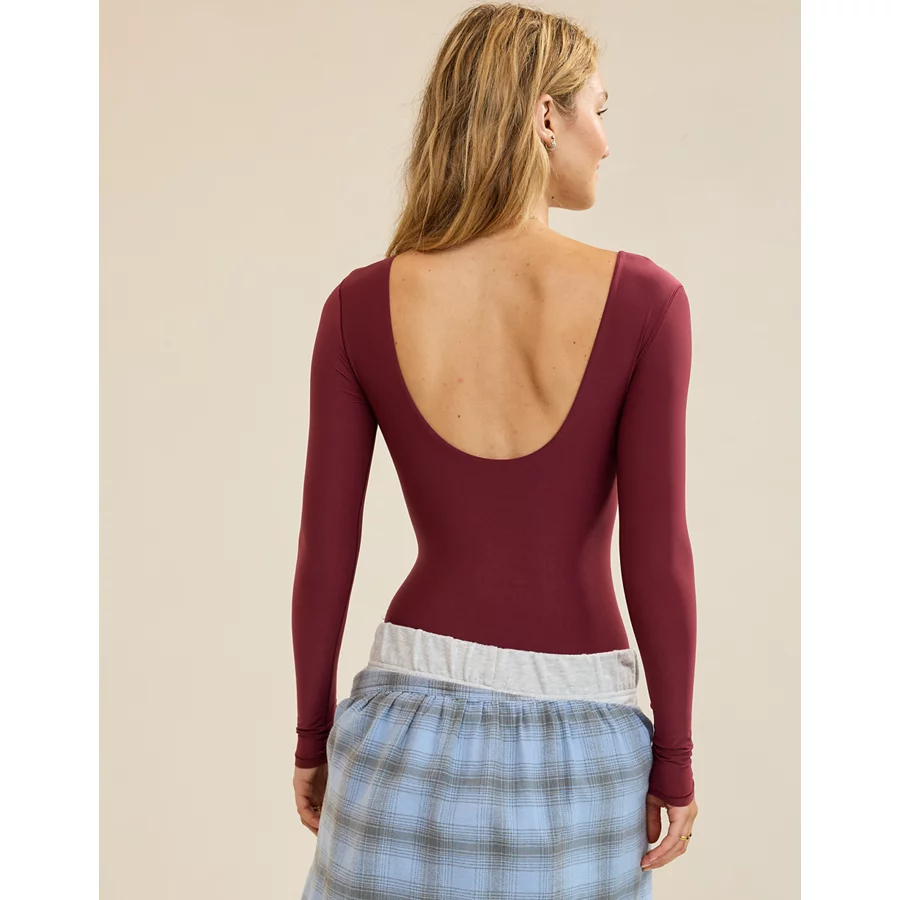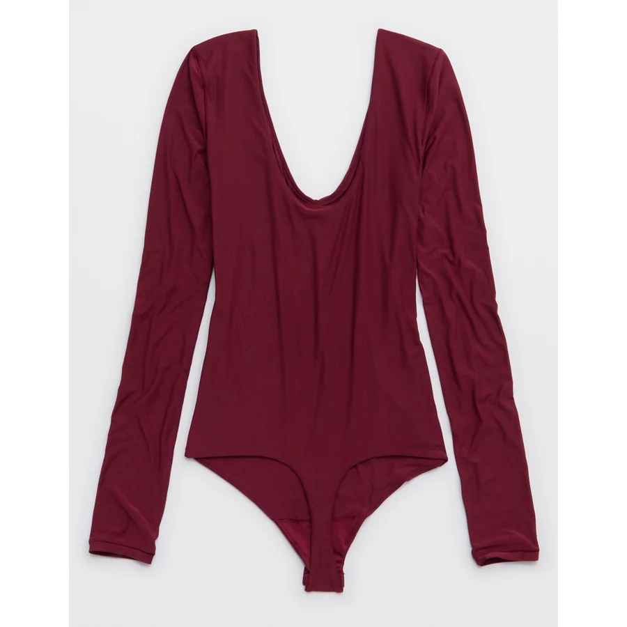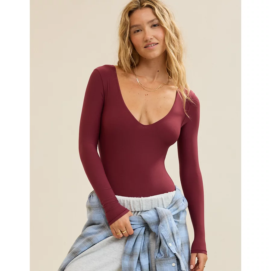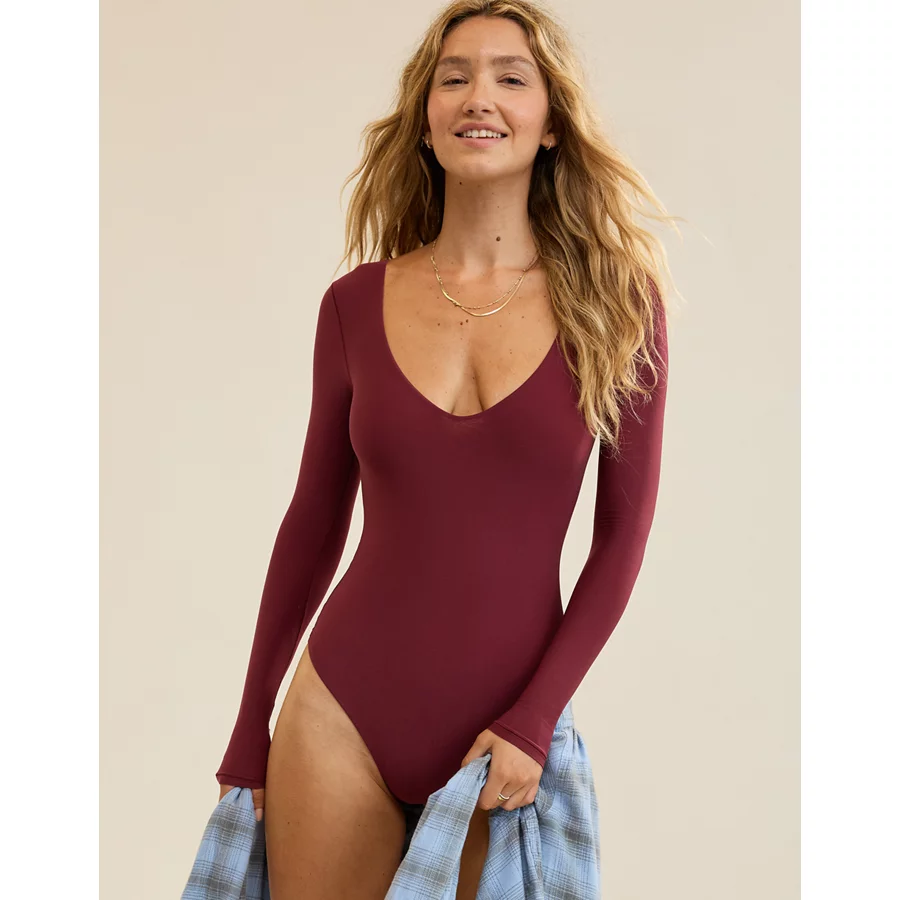 SMOOTHEZ Long Sleeve Plunge Bodysuit – Deep Cherry