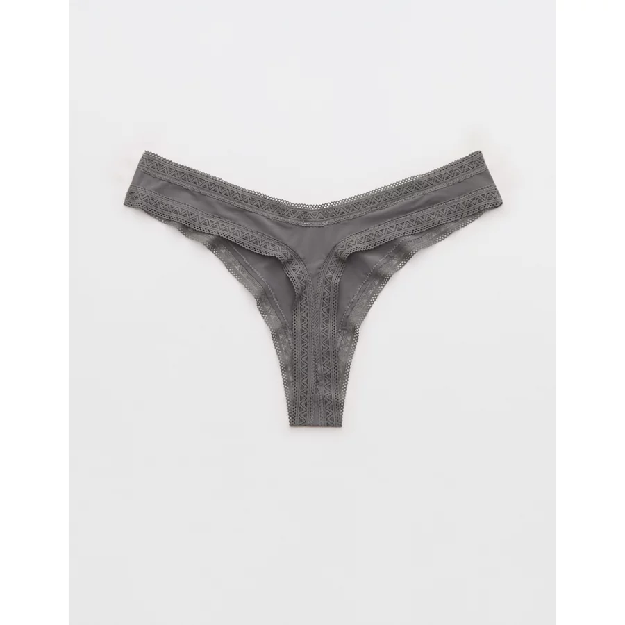 SMOOTHEZ Microfiber Lace High Cut Thong Underwear – Shell Gray
