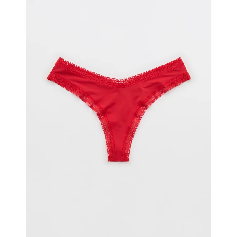 SMOOTHEZ Microfiber Lace Thong Underwear – Bright Red