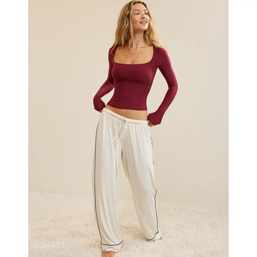 SMOOTHEZ Square Neck Long Sleeve T-Shirt – Deep Cherry