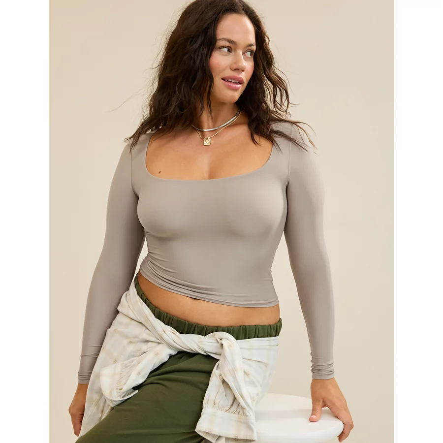 SMOOTHEZ Square Neck Long Sleeve T-Shirt – Stone Harbor