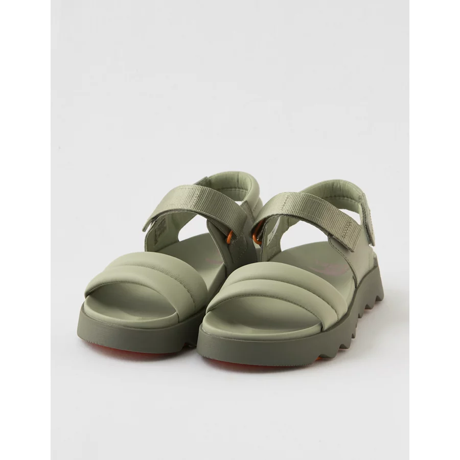 Upper: Full grain leather upper with puffed forefoot detailing. Two points of adjustability – midfoot webbing strap and heel leather ankle strap with hook and loop closures. Synthetic leather lining.