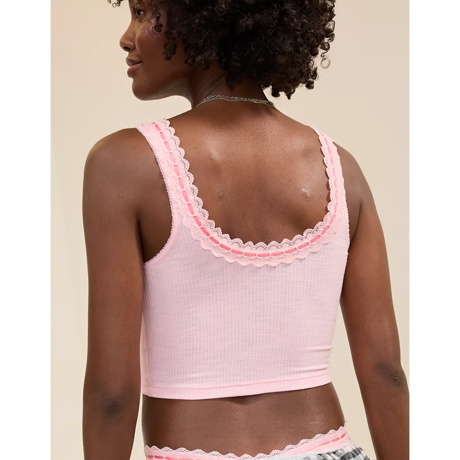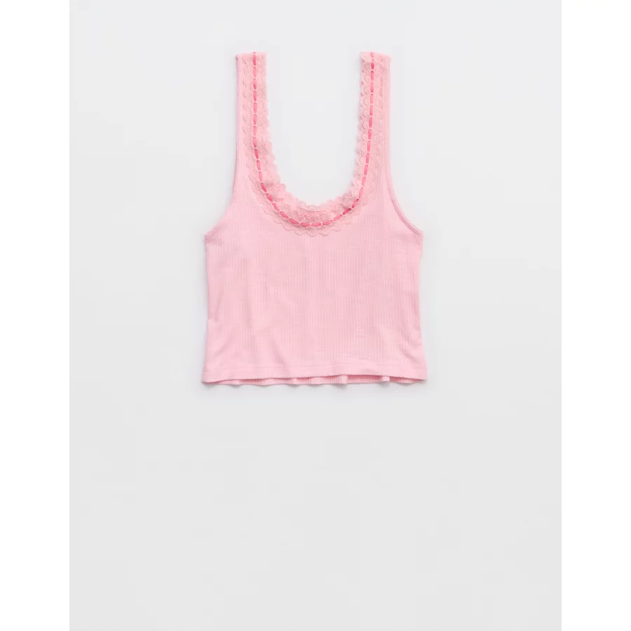 Superchill Cotton Rib Lace Tank Top – Club Pink