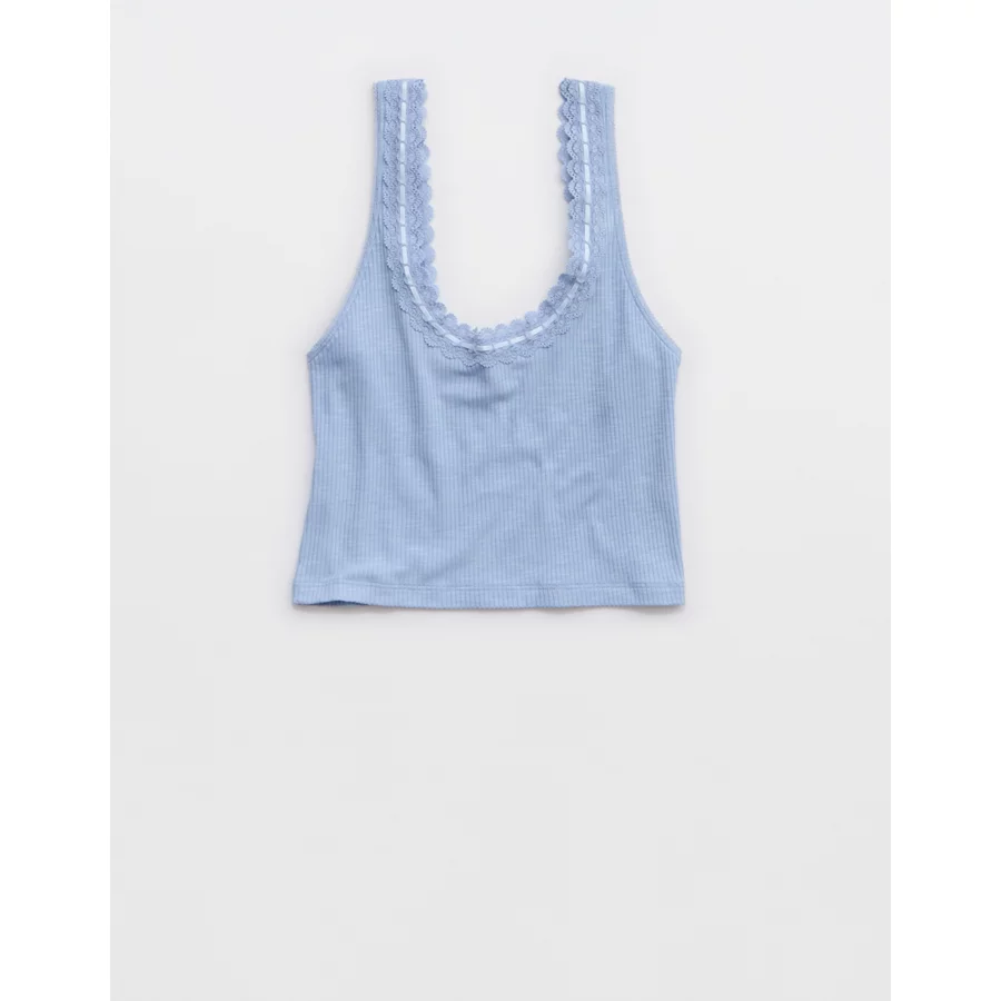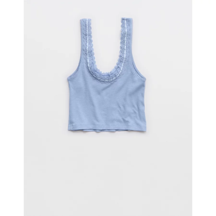 Superchill Cotton Rib Lace Tank Top – Monaco Blue