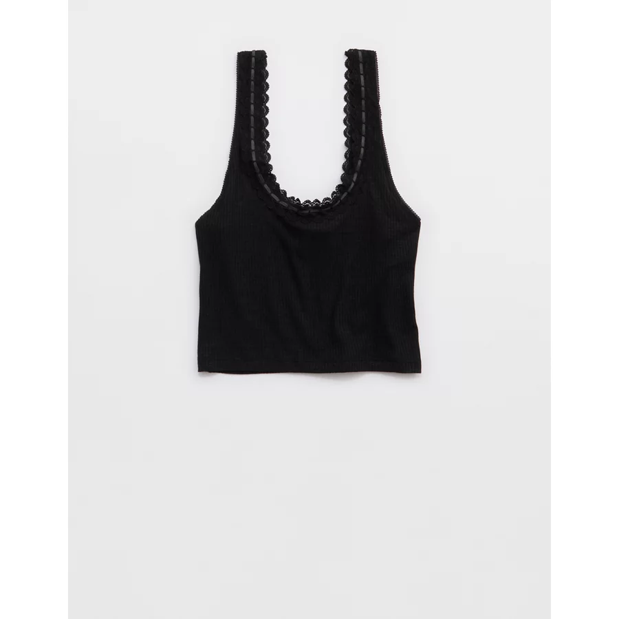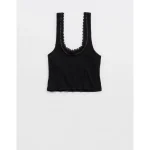 Superchill Cotton Rib Lace Tank Top – True Black