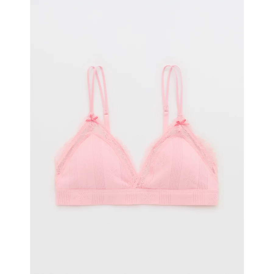 Superchill Pointelle Padded Triangle Bralette – Club Pink