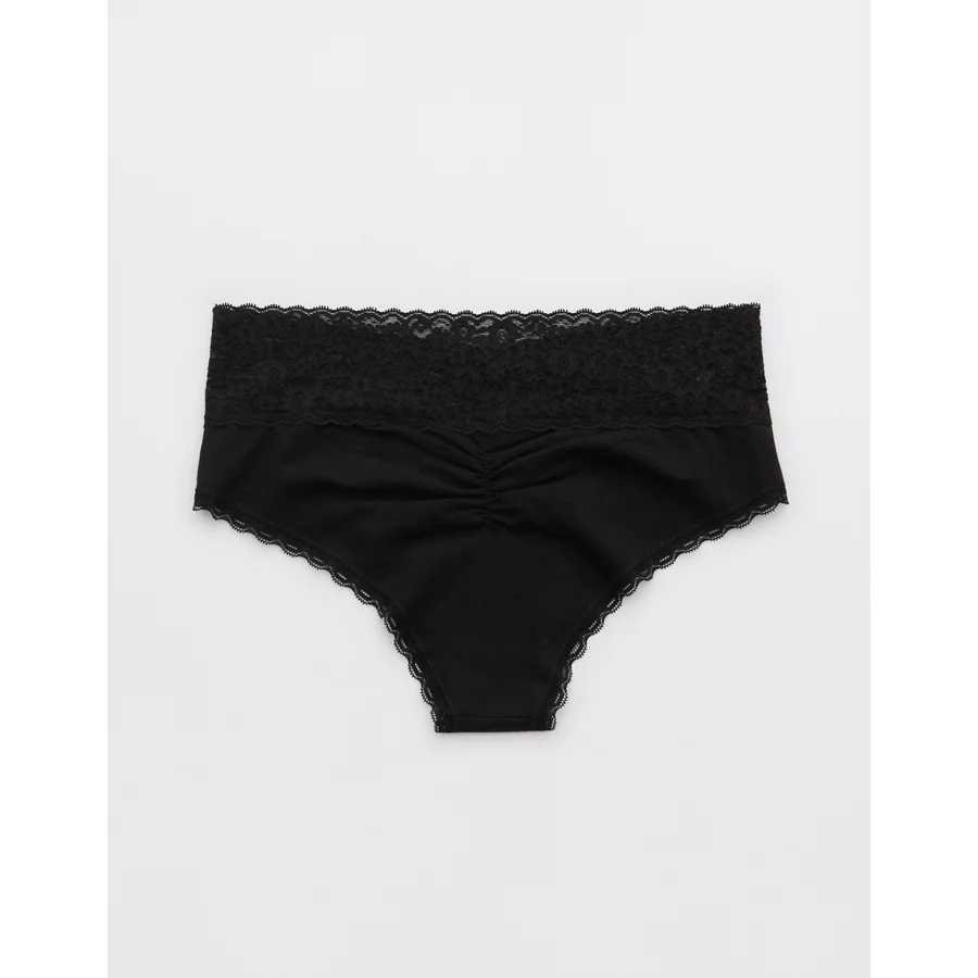 Superchill Vintage Lace Cotton Cheeky Underwear – True Black