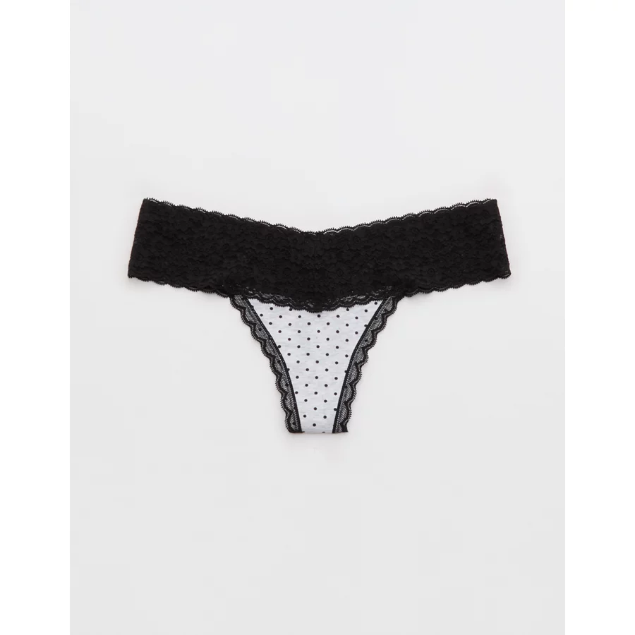 Superchill Vintage Lace Cotton Thong Underwear - Heather Frost