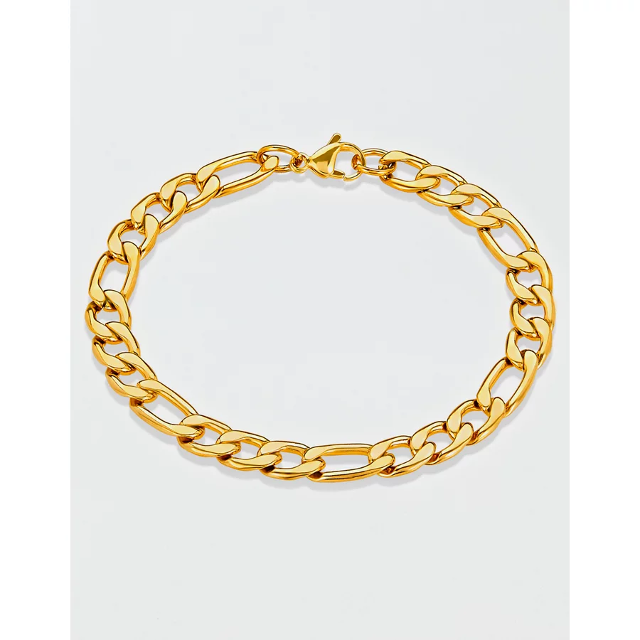 West Coast Jewelry Stainless Steel 8mm Figaro Chain Bracelet – Golden